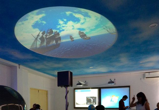 隨著教育觀念和地理學(xué)科教學(xué)改革的深“現(xiàn)代化地理專用教室”被許多具有前瞻意識的學(xué)校提上議事日程。通常以地理課程內(nèi)容時間跨度大作為國內(nèi)數(shù)字化教學(xué)的先鋒品牌,羿飛教育將利用宇宙星空演示穹頂對枯燥復(fù)雜的知識進(jìn)行生動的展現(xiàn)和傳達(dá),學(xué)生能夠更好更快地進(jìn)入課堂,地理課堂所提供的學(xué)習(xí)情境也更能激發(fā)學(xué)生對地理的喜愛和專注。比如講解麥哲倫航行,教師就可以通過播放一個視頻來方便學(xué)生記憶,從西班牙出發(fā)穿越大西洋、太平洋、印度洋最終回到西班牙。流經(jīng)了哪些地方,就可以展現(xiàn)各城市風(fēng)俗、地貌等比較有代表性的事物,讓學(xué)生在記住這些之后也能記住此次航行的意義,沉浸式的觀感體驗(yàn)讓學(xué)生仿佛跟從船隊(duì)經(jīng)歷來一次環(huán)球旅行。