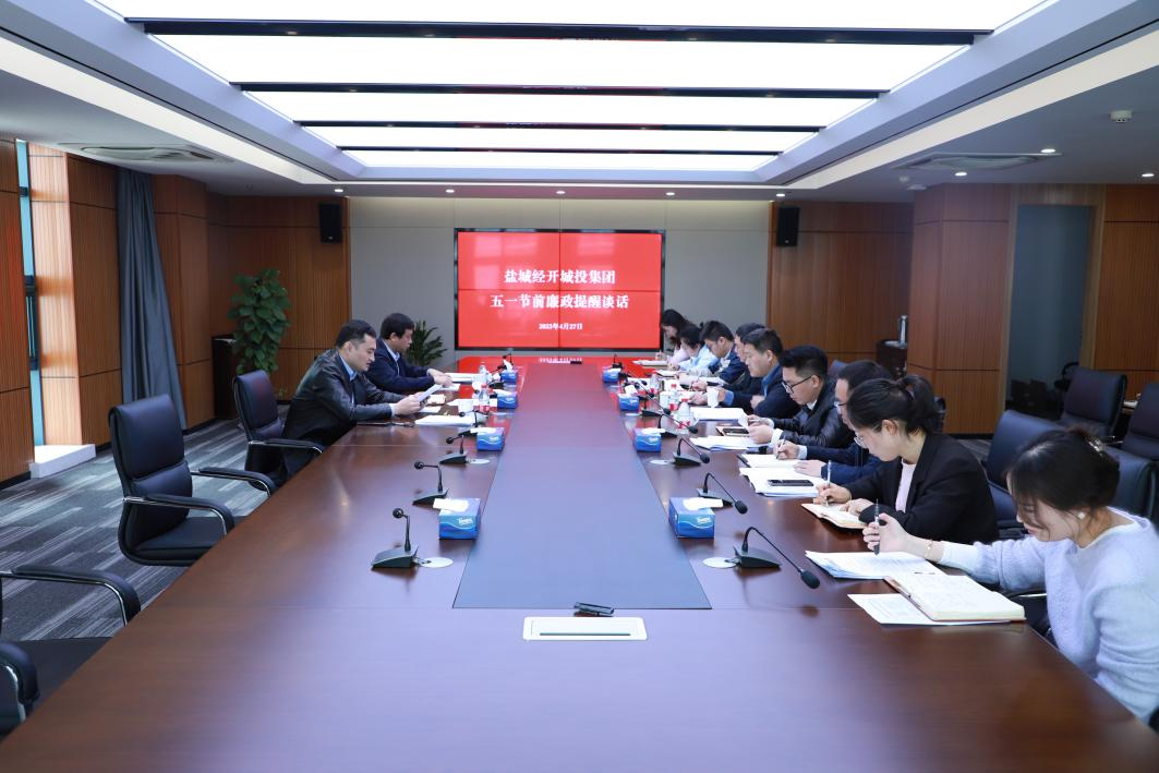 4月27日上午,鹽城經(jīng)開城投集團(tuán)開展2023年“五一”節(jié)前廉政提醒談話,集團(tuán)董事長王建旭主持會議并講話,集團(tuán)領(lǐng)導(dǎo)班子成員、部門負(fù)責(zé)人、項目負(fù)責(zé)人及重點崗位人員參加會議。