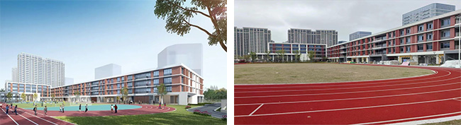 科技城小學內裝項目效果圖(左)與現(xiàn)場圖(右)