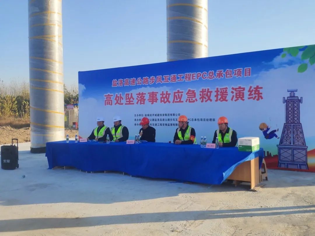 為持續(xù)樹牢安全紅線意識,普及安全生產(chǎn)知識,提升施工現(xiàn)場管理和一線作業(yè)人員安全素養(yǎng)和防護(hù)意識,有效保障施工領(lǐng)域安全生產(chǎn)形勢平穩(wěn),11月28日下午,鹽城經(jīng)開城投集團(tuán)在鹽洛高速步鳳互通項(xiàng)目現(xiàn)場開展高處墜落事故應(yīng)急救援演練活動。集團(tuán)工程條線全體人員及各在建項(xiàng)目項(xiàng)目經(jīng)理、總監(jiān)參加活動。