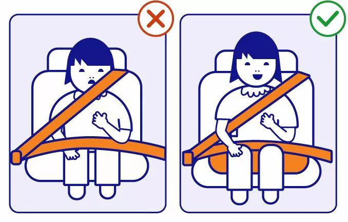 安全帶跨過兒童的肩膀,斜對角貼胸而過;腰帶應(yīng)該跨過大腿根部而不是小孩的腹部,這樣可以避免勒傷兒童的腹部;如果兒童身高不足,必須配合使用增高坐墊或者增高座椅抬高他們的身體。