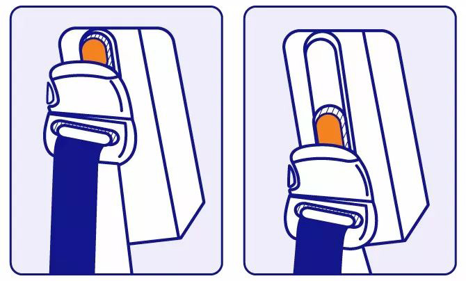 2、坐在車座上,一手拉出安全帶,另一只手握住卡扣處,將卡扣片與卡扣處卡緊,以確保安全帶牢牢的拴住身體。